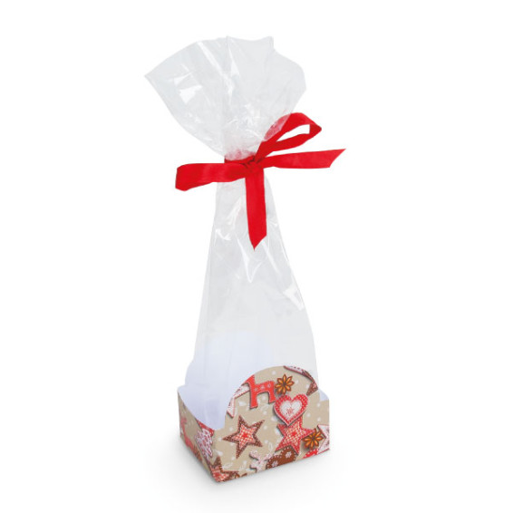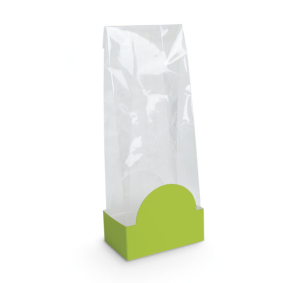 Ein Pappkorb, der eine SOS-Bodentasche aus Polypropylen unterstützen und hervorheben soll. Er ist in dekorierten oder neutralen Ausführungen erhältlich.
