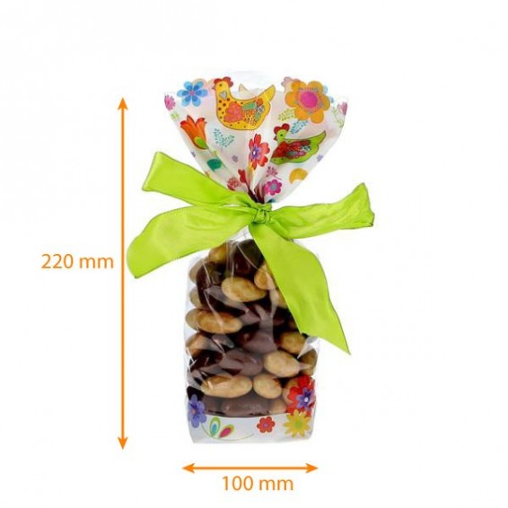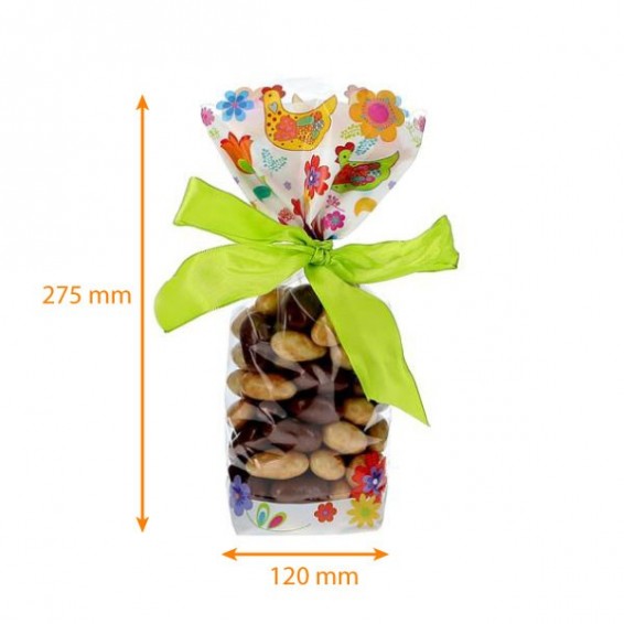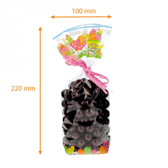 Genauer gesagt bestehen die Frohe Ostern-Tüten aus durchsichtigem Polypropylen, damit Ihre süßen Kreationen gut zur Geltung kommen. Außerdem besteht der Boden dieser Tüte aus Karton, um dem Ganzen eine bessere Steifigkeit zu verleihen. Dadurch sind Ihre Lebensmittel leichter zu transportieren und können in Ihrem Schaufenster besser zu Ihrer Osterdekoration präsentiert werden!